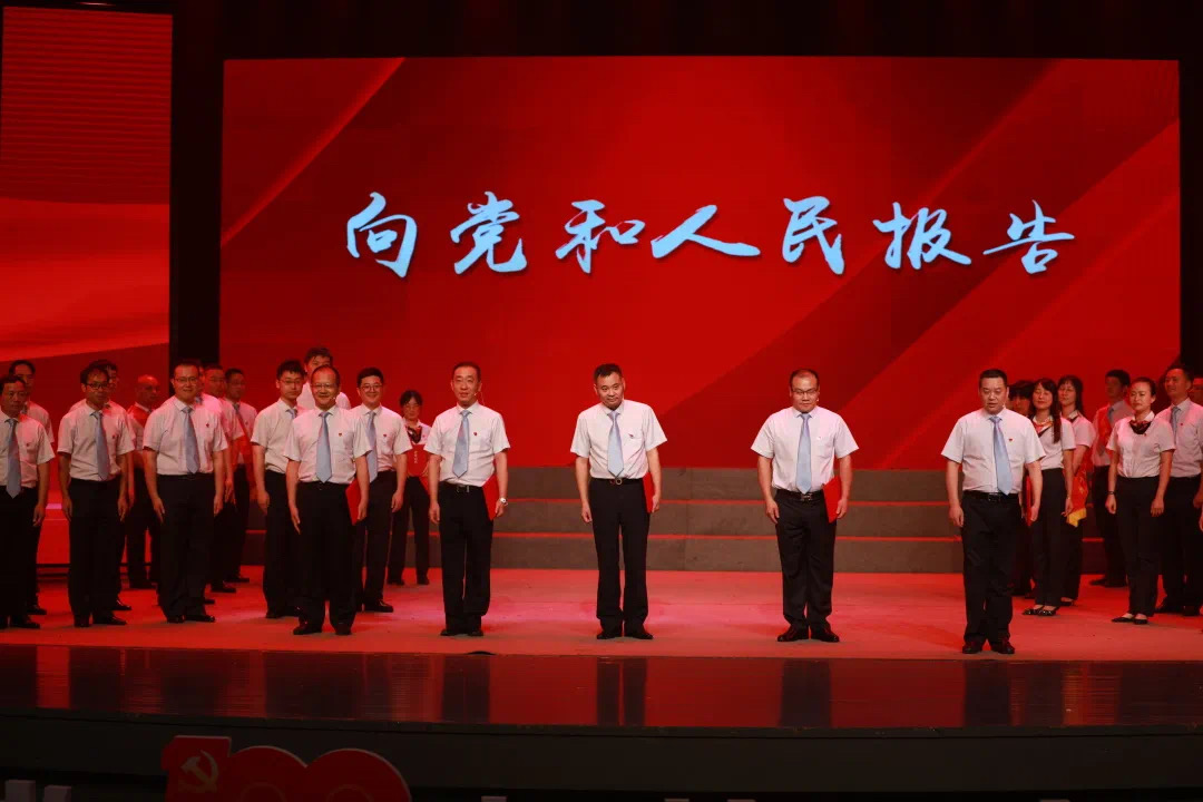 晚會(huì)在《向黨和人民報(bào)告》中進(jìn)入高潮,集團(tuán)黨委書記、董事長(zhǎng)周儉,集團(tuán)黨委副書記、副董事長(zhǎng)、總經(jīng)理朱志康分別為榮獲2020年集團(tuán)先進(jìn)基層黨組織、優(yōu)秀黨務(wù)工作者和優(yōu)秀共產(chǎn)黨員代表頒獎(jiǎng);現(xiàn)場(chǎng),全體新黨員和老黨員在周儉董事長(zhǎng)帶領(lǐng)下莊嚴(yán)宣誓,表達(dá)了身為新時(shí)代共產(chǎn)黨員的責(zé)任與擔(dān)當(dāng);集團(tuán)下屬5家公司主要負(fù)責(zé)人向全體人員現(xiàn)場(chǎng)報(bào)告本公司“十四五”時(shí)期目標(biāo),表達(dá)了對(duì)黨、對(duì)政府、對(duì)人民的承諾。