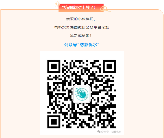 目前,我們有兩個微信平臺啦!一個是“紡都優(yōu)水”公眾號,另一個是“柯橋水務(wù)”服務(wù)號,兩者有什么區(qū)別呢?