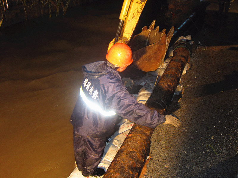 災情就是命令!集團接到縣防指命令后,立即啟動大口徑管道應急搶修預案。根據(jù)受災情況,集團迅速派出由20多名人員組成的專業(yè)搶修隊伍,隨帶各種專業(yè)搶修工具,冒著大雨趕赴受災點,并于下午16時進入現(xiàn)場開始搶修。經過8個小時的持續(xù)作戰(zhàn),搶修隊克服重重困難,終于搶通供水管道。然而,凌晨3點多,敖紅了雙眼的搶修人員卻再次接到任務,立即趕赴王壇鎮(zhèn)幫助王壇鎮(zhèn)水廠解決因停電造成管網無法輸水的問題,于凌晨5點恢復供水。