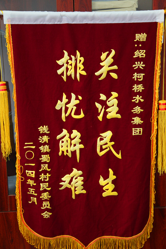 5月27日下午,錢清鎮(zhèn)蜀風(fēng)村徐萬銘書記專程來到集團(tuán)公司,送來一面“關(guān)注民生,排憂解難”的錦旗,感謝集團(tuán)公司幫助他們解決困擾多年的夏季高峰期間供水低壓“老大難”問題。