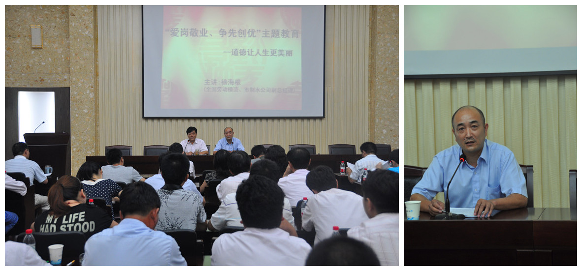 811日下午,公司邀請(qǐng)全國勞動(dòng)模范、紹興市制水公司副總經(jīng)理徐海根為公司班組長(zhǎng)以上管理干部作題為《道德讓人生更美麗》的宣講教育,共80余人聆聽了模范的精彩宣講。會(huì)上,徐海根結(jié)合自身工作實(shí)際,用樸實(shí)的語言從職業(yè)道德、責(zé)任心、愛崗敬業(yè)等方面講述親身經(jīng)歷的感人故事,感人至深,催人奮進(jìn)。與會(huì)的每個(gè)人在這里接受了一次心靈的洗禮,取得較好的效果。