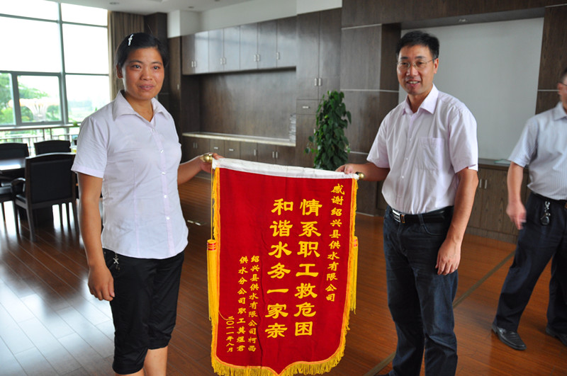 8月17日上午,柯西分公司職工莫煜君在分公司經(jīng)理田長榮及其所在村村支書的陪同下來到公司送上一面“情系職工救危困,和諧水務一家親”的錦旗,感謝公司對她的關(guān)愛和幫助。