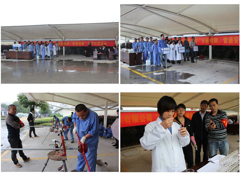 為增強(qiáng)公司員工學(xué)技術(shù)、練本領(lǐng)的積極性,10月下旬,公司組織開(kāi)展崗位技能比武活動(dòng),比武內(nèi)容分為水質(zhì)檢測(cè)、管道安裝兩個(gè)項(xiàng)目。在管道安裝PK賽,參賽員工要在規(guī)定時(shí)間內(nèi)用DN20鋼塑管安裝一個(gè)正方形框架,根據(jù)施工圖紙完成編制料單、切割、套絲、安裝等步驟。水質(zhì)檢測(cè)則重點(diǎn)考驗(yàn)水質(zhì)采樣、指標(biāo)檢測(cè)的操作規(guī)范性。經(jīng)過(guò)現(xiàn)場(chǎng)裁判的評(píng)分,兩個(gè)項(xiàng)目各取前三名進(jìn)行獎(jiǎng)勵(lì)。