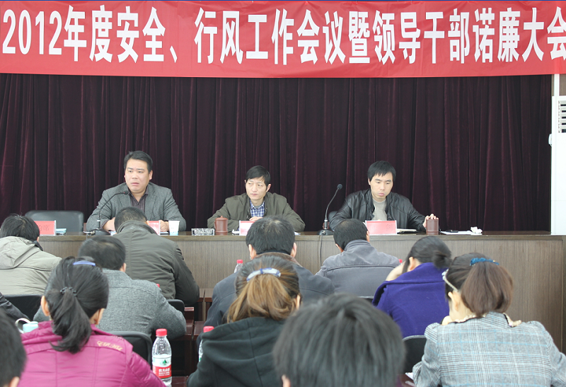 公司董副總首先對2011年安全、行風(fēng)工作開展情況作了總結(jié),并從提高意識、加強監(jiān)管、嚴格考核三方面對今年的安全、行風(fēng)工作進行了部署。陳劍總經(jīng)理在會上肯定了過去一年公司安全、行風(fēng)工作取得的成績,同時要求全體員工充分認識安全生產(chǎn)與行風(fēng)建設(shè)的重要性,在今后的工作中,突出重點,狠抓落實,使安全、行風(fēng)工作有新的突破。會上,公司與各部室簽訂了安全、行風(fēng)目標管理責(zé)任書,中層正職以上領(lǐng)導(dǎo)干部向與會人員作諾廉報告。