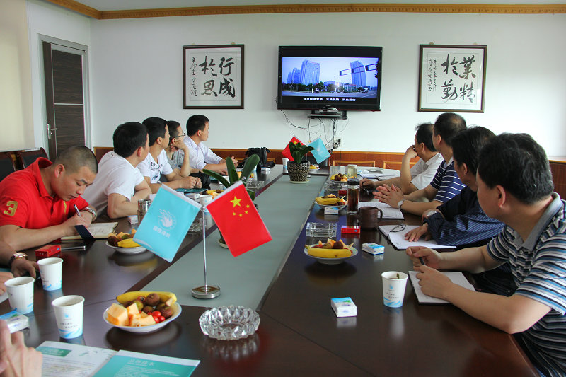 圖為公司領(lǐng)導(dǎo)與客人們一起觀看宣傳片