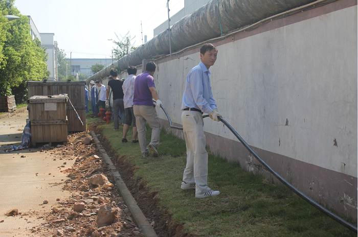 當天氣溫高達35℃,酷暑并沒有消褪黨員們的工作勢情,大家分組結隊搬運電纜、為管溝覆土,勞動現(xiàn)場呈現(xiàn)出一派熱火朝天的景象。在同志們的共同努力下,僅一個小時就完成了長300米、近2噸重的電纜鋪設工作。參加本次義務勞動的既有黨員,也有部分入黨積極分子、黨校培訓班學員,大家用實際行動詮釋了共產黨員的先進性。
