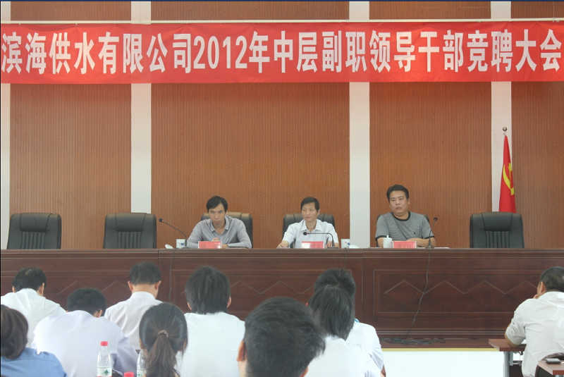 10月9日上午,濱海供水公司在新會議室召開2012年中層副職領(lǐng)導(dǎo)干部競聘大會,公開選拔辦公室、企管部、運行部、工程部、營銷部的9個副職崗位。公司中層以上領(lǐng)導(dǎo)干部、職工代表共62人參加會議。此次競聘,堅持“擇優(yōu)錄用、德才兼?zhèn)?、注重實?rdquo;原則,通過公開報名、資格審查,13名候選人在會上作競聘演講。經(jīng)現(xiàn)場民主測評、領(lǐng)導(dǎo)表決等環(huán)節(jié)的角逐,最終8名工作表現(xiàn)突出、群眾基礎(chǔ)好的優(yōu)秀人才脫穎而出。此次競聘,促進(jìn)了干部之間的相互交流、學(xué)習(xí),同時也使公司更加全面地了解了干部隊伍的優(yōu)缺點,為公司進(jìn)一步選拔人才提供了參考。