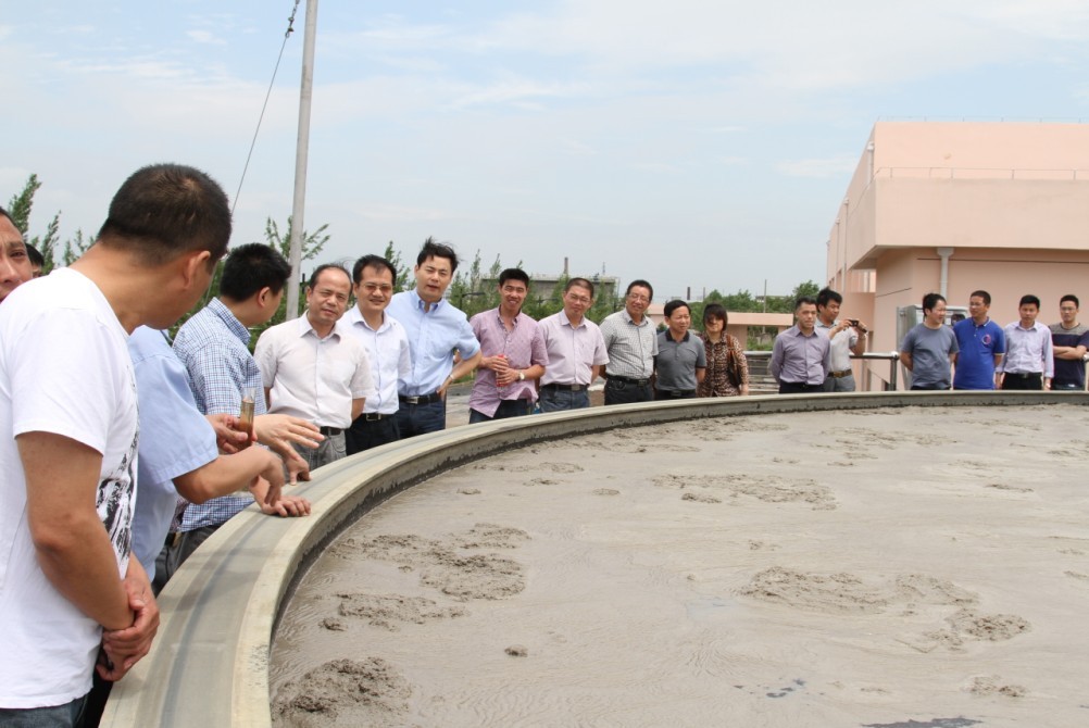5月27日,福全鎮(zhèn)黨委書記王勤率企業(yè)家代表一行40余人到紹興水處理公司調(diào)研氣浮項(xiàng)目。調(diào)研組實(shí)地參觀了污水處理一期穩(wěn)流池和氣浮工程現(xiàn)場,仔細(xì)聽取了技術(shù)人員對工藝技術(shù)的講解,并對經(jīng)氣浮工藝處理前、后水樣進(jìn)行觀測。隨后,調(diào)研組一行在四樓會議室進(jìn)行座談,進(jìn)一步了解有關(guān)情況。會上,印染企業(yè)老總紛紛表示,通過這次考察和交流,了解了污水處理的新工藝、新技術(shù),對政府提出的納管新要求充滿了信心。