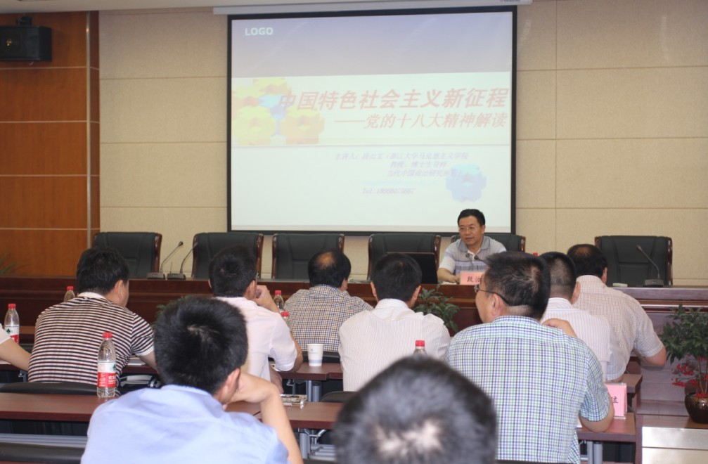 培訓(xùn)中,段教授從堅(jiān)定中國特色社會(huì)主義的信念、堅(jiān)持科學(xué)發(fā)展觀的科學(xué)指導(dǎo)、堅(jiān)持科學(xué)的改革開放觀等六個(gè)方面對(duì)十八大精神進(jìn)行解讀。深邃的政治理論用深入淺出的語言、具體詳實(shí)的事例生動(dòng)表述,使全體參加講座的人員受到了一次思想的洗禮。這對(duì)于進(jìn)一步學(xué)習(xí)貫徹落實(shí)十八大精神發(fā)揮了積極的推動(dòng)作用。