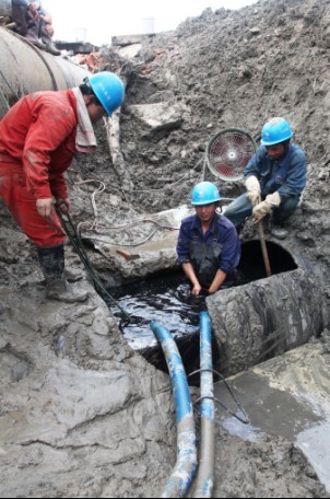 該污水管道是全縣三大排污管線之一,承接了錢清、楊汛橋、夏履、湖塘、柯巖的工業(yè)污水和生活污水排放。經(jīng)過前期充分準(zhǔn)備,整項(xiàng)遷建工程從5月25日開始,至6月18日進(jìn)行兜口,通過搶修人員的持續(xù)作戰(zhàn),兜口工作提前完成,遷建工程比計(jì)劃提前15個(gè)小時(shí)完工。