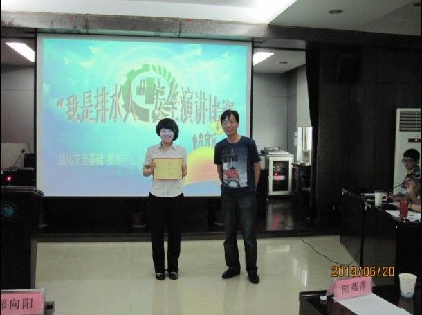 參賽選手在講的同時(shí)以PPT為背景為大家展示演講內(nèi)容,觀點(diǎn)鮮明,立意深刻,語言表達(dá)自然流暢,本次比賽結(jié)合“我是排水人”主題教育,以“強(qiáng)化安全基礎(chǔ)、推動(dòng)安全發(fā)展”為線索,體現(xiàn)了排水人積極向上的精神風(fēng)貌。最后來自柯海分公司的林佳獲得第一名,由鄭書記親自頒獎(jiǎng)。