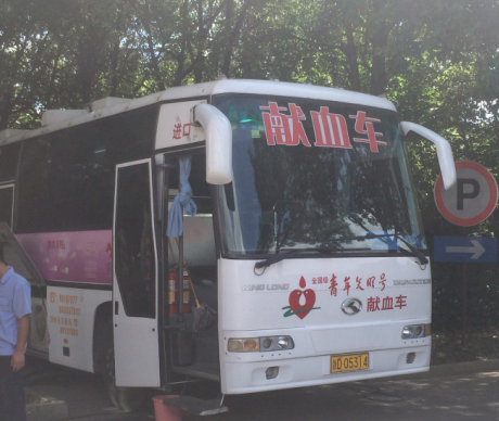 一大早,市中心血站的獻(xiàn)血車早早地??吭诹斯巨k公大樓前的樹蔭下,一樓會議室內(nèi)也早已人頭攢動,員工們正在井然有序地填寫獻(xiàn)血表格,依次進(jìn)行著初檢。