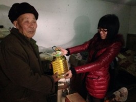 志愿者們?yōu)槔先怂腿チ舜竺?,食用油,水果等年貨物資,老人看到我們的到來,顯得非常高興,就仿佛看到親人到來一般,我們祝愿老人健康長壽。