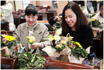 女人遇見花,注定是場(chǎng)美麗的邂逅。3月8日上午,排水公司舉行了“慶三八——提升女性修養(yǎng)”為主題的花藝培訓(xùn)活動(dòng)?;顒?dòng)邀請(qǐng)專業(yè)花藝?yán)蠋熃o女職工們講解花藝知識(shí),介紹鮮花保鮮小竅門,傳授插花藝術(shù)和技巧,集團(tuán)婦聯(lián)主席童佳萍特邀出席。活動(dòng)現(xiàn)場(chǎng),春意盎然,花香四溢,女職工們躍躍欲試,小試牛刀??的塑?,向日葵,洋桔梗……在女神們的巧手里煥發(fā)出新的生機(jī)。鮮花和女神更配哦。