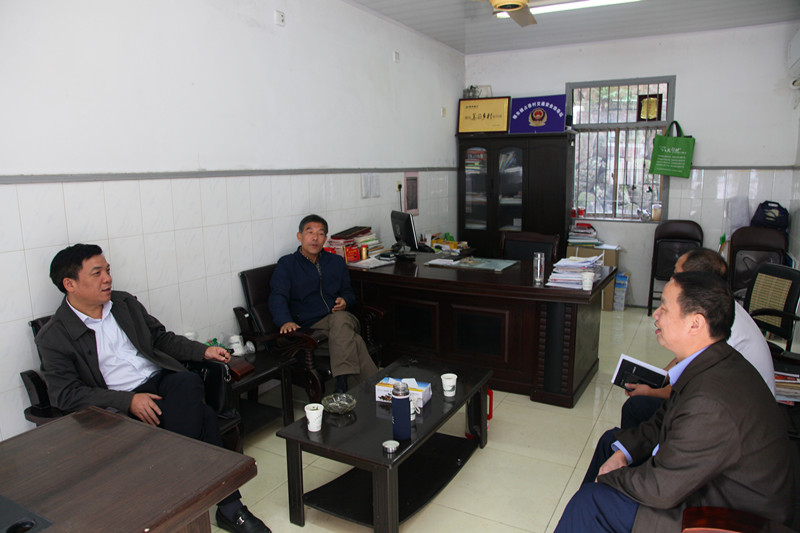 周董事長與占岙村委書記黃天明及該村掛聯(lián)干部研究“五星達(dá)標(biāo),3A爭創(chuàng)”工作