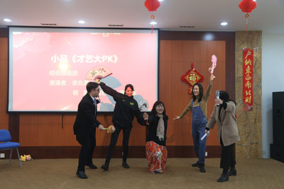 舞臺上,迎春聯(lián)歡會節(jié)目形式多樣、亮點紛呈,由各部門精心選送的小品、歌曲演唱、三句半和樂器演奏等形式各異的節(jié)目精彩上演。江濱人脫下工裝,盡顯才藝,通過各桌打分,綜合部選送的小品《才藝PK》獲得最佳節(jié)目獎。最后公司總經理徐冬上臺致辭,向全體干部員工及家屬致以新春祝福,向奮斗在一線崗位的員工表達敬意,迎新聯(lián)歡會圓滿落幕。